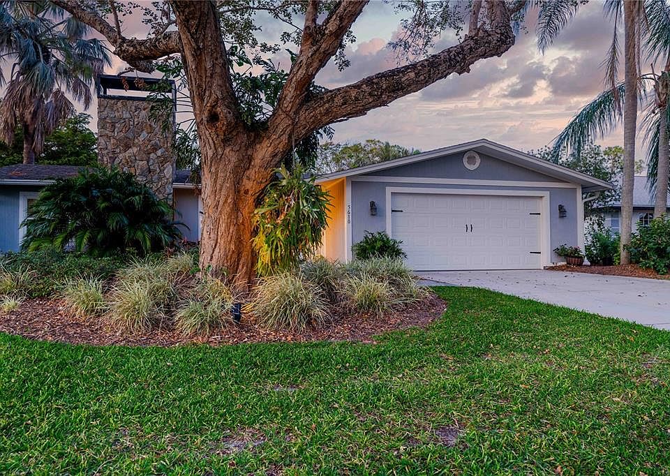 One or more photo(s) has been virtually staged. Seize this incredible opportunity to own a beautifully maintained 3-bedroom, 2-bath pool home in the highly desirable Center Gate Woods neighborhood of Sarasota. From the moment you arrive, the front yard greets you with lush, mature landscaping and a majestic Grand Live Oak, setting a picturesque and inviting scene. Inside, you’ll find 1,500 sq ft of updated living space, showcasing tile and luxury plank floors throughout for an elegant and low-maintenance lifestyle. The fully remodeled kitchen is a true showstopper, featuring eco-friendly, non-porous Corian countertops, stainless steel appliances, solid wood cabinets, light stone tile backsplash, and featuring a convenient kitchen pass-through bar that seamlessly connects the kitchen and living room, enhancing the open and inviting feel. The spacious living room invites gatherings around a stunning natural stone, wood-burning fireplace and boasts newer hurricane impact windows, ring doorbell, and nest thermostat combining warmth with modern convenience. Both bathrooms are bright and tastefully updated, enhancing the home’s charm. Step into your private backyard oasis, complete with a sparkling pool and an expansive 8,800 sq ft lot—perfect for entertaining or simply relaxing in the Florida sunshine. Stay cool year-round with a brand-new 2023 A/C system, ensuring comfort and peace of mind. Homes like this are a rare find! Don’t miss your chance to own a slice of paradise in the heart of Sarasota. Schedule your private showing today!