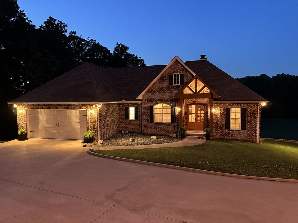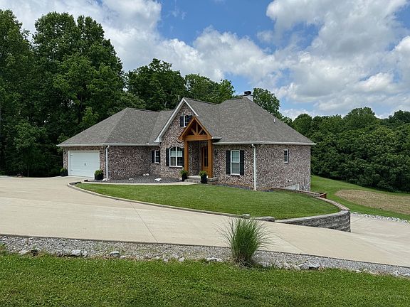 Absolutely stunning & impeccably kept custom home on a private 2.1-acre double lot. Bright open floorplan with 3 beds, 2 baths, & an office w/closet on the main level. Lots of hardwds & tile. Enjoy a gourmet kitchen with a gas stove and stainless steel appliances, open to great room w/gas fireplace. Enjoy dinner or morning coffee on large covered porch overlooking property. The spacious master suite includes an extra-large dream walk-in closet. The basement features a full bath, luxury vinyl plank hardwoods, and a large closet, perfect as a bonus room or extra bedroom. There is also plumbing & water to add a kitchen down. Brand new whole-home Generac gas generator which powers up automatically. Concrete reinforced storm shelter, extra deep garage with space for 4 cars, boats, & toys. Huge laundry room w/sink. Easy access to Nashville, Kentucky, lots of great shops/restaurants. Don't miss out on this amazing property with beautiful views! Extra lot could possibly be sold or divided.