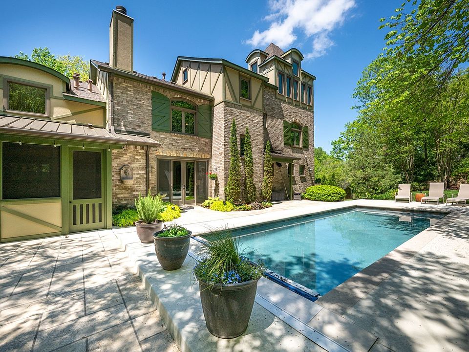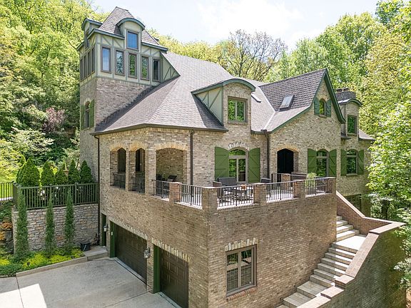 Beauty, privacy, quality, and convenience—Hillview House has it all! This classic European-style custom-built Brentwood home features premium-quality finishes like natural stone fireplaces, slate flooring, and copper gutters. Nestled on a gorgeous 1.19 acre wooded hillside, this private architectural masterpiece offers lovely views of nature from every window, sunsets from the terrace, and peaceful, refreshing beauty from the poolside garden in the backyard. The 18-window tower on the fourth floor is a library/studio/retreat room with breathtaking views of the surrounding hills. The spacious ground-floor apartment—with a full kitchen—is a fantastic in-law/ au pair suite, ideal for multi-generational living. Located in the quiet, wooded hills near Old Hickory Blvd and Franklin Road, this private sanctuary is only blocks away from Brentwood shopping, dining, and convenient access to Interstate 65.