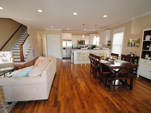 Beautiful lot & curb appeal! Features are granite, stainless appliances, hardwoods, recessed lighting, tile, craft trim. Master suite/large shower plus soaking tub and huge closet down. 3 bedrooms/ quality bonus up. Spacious closets through-out Rocking chair porch & 2nd floor balcony. Enjoy private deck and fenced yard!