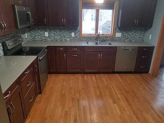 Four-level split with three bedrooms, two baths and living room on the upper level with includes the master bedroom with private 3/4 master bath. Two bedrooms, one bath and family room with wood-burning fireplace on the lower level. An updated kitchen with quartz countertops, tiled back splash, slate appliances, wood floors and plenty of eat-in space shares the main floor with the formal dining room that has wood floors, a vaulted ceiling & walks out to the deck. Two bedrooms, one bath and the family room with wood-burning fireplace round out the lower level. The exterior includes a deck, patio with stone path to the garage, and fenced yard.