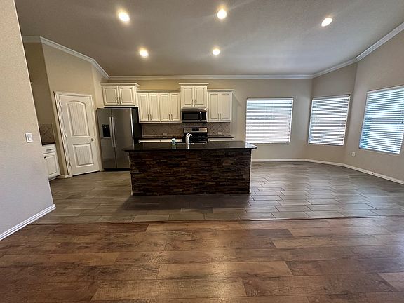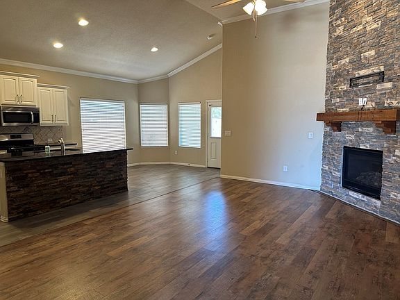 Don't miss out on this beautiful 4 bedroom, 2 bathroom home that offers a bright and inviting layout with high ceilings and recessed lighting throughout! The living area features a cozy gas log fireplace, while the primary suite includes a separate tub and shower for added comfort. Step outside to enjoy the covered patio and outdoor gas fire pit—perfect for entertaining or relaxing on cool evenings. Conveniently located near plenty of new and upcoming development!