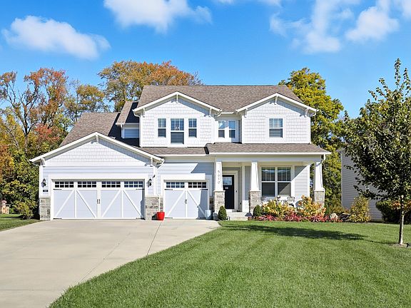 Tucked in Noblesville's Wood Hollow community, this beautifully updated 4-bedroom, 3.5-bath home blends modern comfort, refined finishes, and exceptional outdoor living. Set on a quiet cul-de-sac and backing up to mature trees, it offers both privacy and a peaceful backdrop that enhances every view. The inviting open floor plan centers around a stunning 2-story great room with a floor-to-ceiling stone fireplace and walls of windows that fill the space with natural light. The gourmet kitchen features new countertops, sink, backsplash, and dishwasher, complemented by a large center island and adjoining dining area-perfect for everyday living and effortless entertaining. A flexible rec room adjoins the main living space, while the split floor plan provides privacy for the spacious primary suite, complete with a spa-like bath and custom closet system. The newly finished lower level expands the home's functionality, offering a full wet bar, full bath, and generous living area ideal for guests, a home theater, or fitness space. Step outside to your private, fenced backyard retreat featuring a resort-style pool, paver patio, and elegant gazebo for shaded relaxation. Additional updates include new LVP and carpet, plantation shutters, cased windows, smart thermostat, Ring security system, and refreshed landscaping with added trees and lighting. With more than $250K in thoughtful improvements, this move-in ready home embodies modern comfort, timeless style, and an effortless sense of tranquility. Welcome home to Wood Hollow.