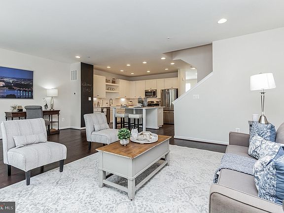 Stunning and spacious townhome with attached entry-level 2-car garage and 2-car private driveway. This particular Parkvue model by Miller and Smith offers over 2400 finished square feet and backs to Pinecliff Park/Woodlands. The characteristics include but are not limited to gleaming modern hardwood floors, open floor plans, large windows for natural lighting, recessed lighting, and 9' ceilings. The kitchen is the heart of this warm home with bright white cabinetry, stunning tile backsplash, stainless steel appliances, and an oversized Quartz Countertop island. The main level also features a grand Family Room with a separate Dining Room, half bathroom, pantry, and coat closet located off the kitchen, and all are ready for you to entertain family and friends. Upper level has 3 generous-sized bedrooms. The Huge Primary Bedroom/Suite has an attached bright bathroom with a dual vanity and a large tile shower. Lower level has an additional full bedroom with a full bath and the perfect rec room or second family room with a walk-out to the fenced backyard and patio. Backyard tree line provides privacy and is only steps away from the neighborhood pool, the trails to Pinecliff Park, and the Monocacy River. Offers an abundance of green space for all your relaxation needs. This absolutely fabulous townhouse in the gorgeous planned community of Tallyn Ridge is minutes from all local commuting routes, the Marc train, downtown Frederick, and all shopping areas.