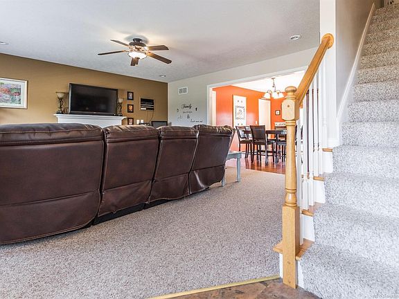 Very nice 4 bedroom, 2.5 bath BRICK home with over 2200 SF of living space. Entry opens into a large living room with open dining area that leads into the airy and bright kitchen. First floor master bedroom with private bath. Three bedrooms and one bath on second level. Basement is mostly finished with bath rough in. Located near end of cul d sac for less traffic and noise. The back yard is fenced and boosts a large deck surrounding a 32 foot pool! Check out the pictures! This is a nice home needing a new owner. Very close to River Ridge and Veteran's Pkwy. Call today for your private showing!