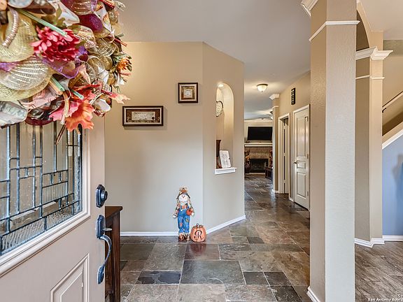 Beautiful well maintained 4 br home located in a gated community and sits on a very quiet street situated on a cul-de-sac. Amazing slate flooring in the main living area & kitchen. Updates include: Wood-like ceramic tile,Kitchen features stainless steel appliances & 42" cabinets w/plenty of storage. Backyard Heated Swim/Spa is perfect for relaxing after a hard days work & entertaining guest and BBQ's! patio slab/built in basketball post. NEISD schools.