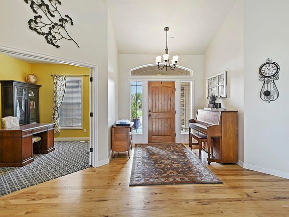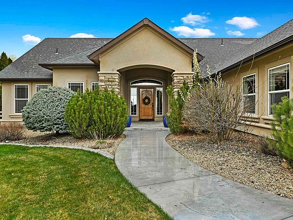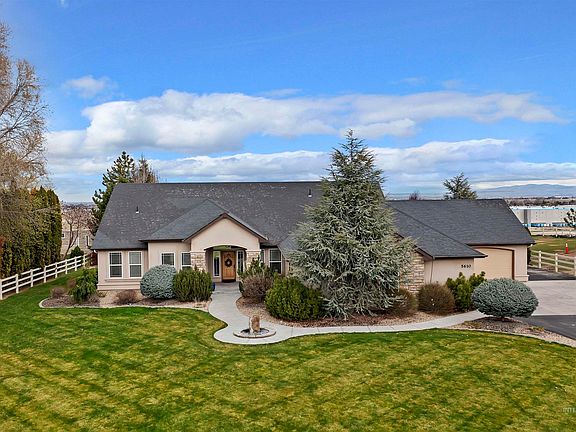 Welcome to stunning 5610 Sylvia Lane in Nampa, where you can experience the perfect combination of space, views, and location. This incredible home boasts over 1 acre of beautifully landscaped space, complete with a huge garden area and mature trees. Imagine relaxing on the covered back patio while enjoying the breathtaking view of the Boise foothills and watching the storms roll in. The north-facing backyard complements both sunrise and sunset, making this the perfect space to unwind. The interior of the home is equally impressive, with a spacious kitchen featuring elegant granite countertops, built-in appliances, and a large pantry. All four bedrooms are conveniently located on the first level, including a bright master suite with en suite bathroom. The pristine guest suite and full bathroom upstairs can be used for hosting guests or as an extraordinary exercise space. And, if you are a car enthusiast, the spacious 4-car garage offers ample space to park two cars and a dedicated area for your workshop needs