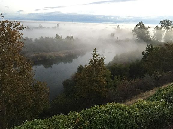 Spectacular location above the San Joaquin River! This is a rare opportunity. You can hear the river flow from the bluff edge where you are in the middle of nature yet only 3 minutes to medical offices and shopping. Three bedrooms, plus extra room that can be a studio or office. Separate living room and family room with dining areas in both. Ten foot ceilings throughout. Master bedroom is isolated and has a large bay window with a view. French doors to back patio from master bedroom and family room. This is a Leo Wilson home in the third phase of Bluff Pointe development. This is the model Windrose.