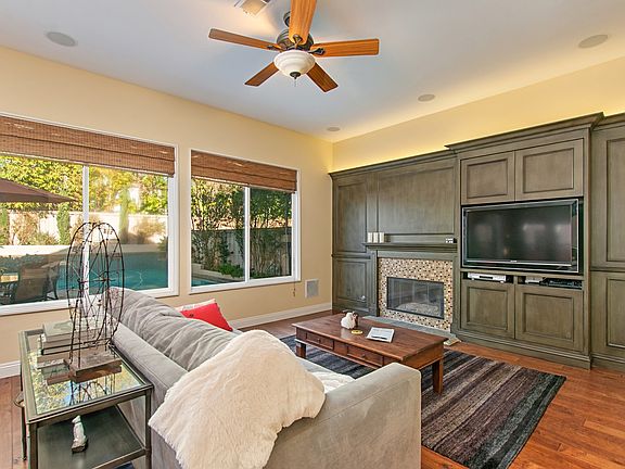 Charming family home in the much desired community of Carmel Country Highlands on a beautiful, mature, tree lined street. Entertainer's spacious backyard offers resort style lap pool, spa and established landscaping. Home features hardwood floors and newer carpet throughout, ceiling fans, A/C and laundry room with sink. Spacious kitchen features stainless appliances and sliding doors that lead to the back yard. Kitchen flows into the family room with fireplace and new TV cabinetry as the focal point.