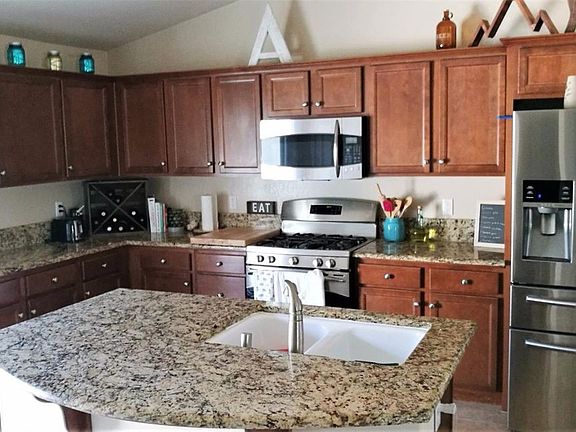 Very cute and popular Lennar construction means superior quality is built in! This clean home has a fantastic kitchen with lots of granite counter space, stainless appliances, large island, and a huge pantry. The open floor plan makes interaction between the kitchen, dining room, and living room easy. Enjoy your space in a master bathroom boasting 2 separate vanities, step-in shower, private commode, and big walk-in closet. The back yard is expansive featuring a block wall, storage shed, and cross-fenced side yard.