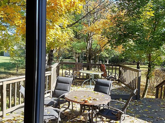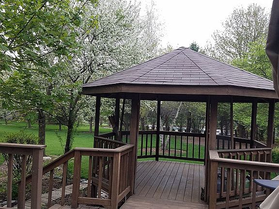Open floor plan with vaulted ceilings; family room with floor-to-ceiling brick wood-burning fireplace...opens to large 2-tier deck (with gazebo) through extra wide patio doors. Upgraded kitchen with: custom extra tall solid-cherry cabinets, breakfast bar island, granite counter tops, vaulted ceiling with skylights. 2nd-floor master bedroom with large walk-in closet, upgraded bath featuring tall vanity with double-sinks and granite top, walk-in shower with contemporary tile & fixtures, large etagere, dressing table with mirror, water closet, glass block windows, LED rheostat lighting, laminate flooring. Spacious vaulted 2nd floor loft with hardwood floors, built-in cabinets & bookshelves...perfect for private home office. Main level offers 2 additional bedrooms (1 walk-in closet 1 standard closet). Hall-way with hard wood flooring, 3 extra-large closets with plenty of shelves. Full bath with tall vanity, granite tops, shower/tub combo, laminate floors. Lower level with main level access & garage access. Half finished with 1/2 bath. Separate laundry room with built-in shelving and separate workshop. Contact Seller: tmh101754@yahoo.com.