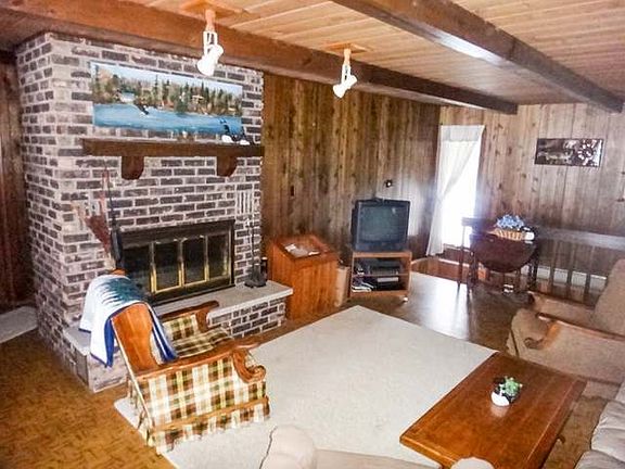 Few home come on the market on Crystal Lake and this home has a view to die for. Sit on your 40 x 8 foot deck and soak in the Northwoods. Home and cottage, on a great wooded 3 acre lot. 200 feet of sand frontage for swimming and 2 docks to pull up the boats. Room for everyone with this 4 bedroom , 2 bath with fully finished walkout basement, 2 fireplaces, plus a 2 bedroom cottage for your guests. 2 car garage and additional 1 car garage for additional storage. With some of your own updates this could be your diamond in the Northwoods. Seller willing to leave furnishings.