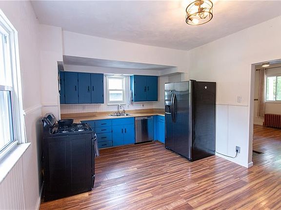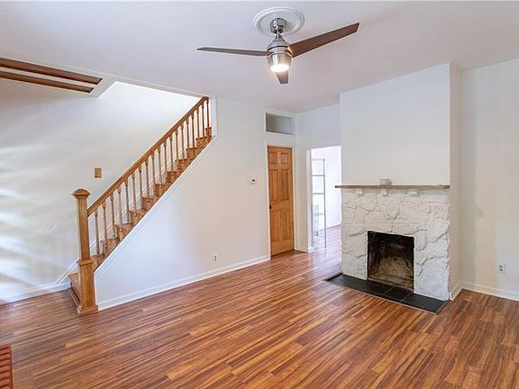 Adorable, move in ready, Lawrenceville home tucked away on a dead end street. The house is situated on a rare double lot.There is a large, covered front porch.The living room is large, with plenty of natural light and a decorative fireplace.Huge eat in kitchen has stainless appliances and tons of counter space. Upstairs has two bedrooms. The primary bedroom has an ensuite bathroom with shower. The second bedroom has exposed brick, recessed lights and access to the attic. Both bedrooms have original pine flooring that has been refinished and restored. The lower level is not a typical Pittsburgh basement. It has a finished room that could be a third bedroom, workout area, home office or art studio. The lower level has a full bath that is more than just a "Pittsburgh basement bathroom." HUGE yard has outdoor space for a garden, entertaining, etc. The "garage" probably doesn't fit modern cars, but is great for bikes, kayaks, motorcycles, or could be a wood shop or art studio.