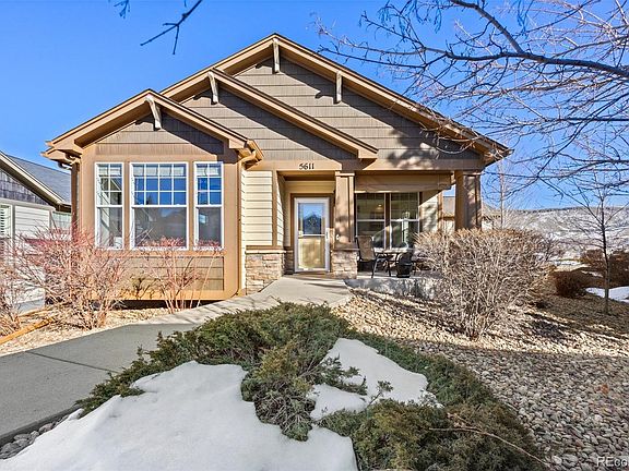 Welcome to this beautiful open ranch plan boasting 2 bedrooms, 2 bathrooms with an attached 2 car garage! Walk into a spacious living room that beams with natural lighting. The living room flows seamlessly to your primary bedroom featuring large bay windows and a 5 piece en suite bathroom with a walk in closet. Down the hall you will find the dining room & kitchen area - perfect for entertaining. The kitchen hosts a large amount of cabinet storage, under cabinet lighting, countertops, lightly used appliances including a double oven, stove top, microwave, dishwasher and refrigerator. The secondary bedroom has beautiful built in features and is attached to a full bath. This home includes a large wrap around deck with a retractable awning and stunning mountain views - you will want to spend the majority of your time outside! Brand new interior paint 2023 and new roof 2021. Located in the desirable Parkview Villas at Golden 55+ community, just minutes from downtown Golden and Boulder, easy access to White Ranch Park, Golden Gate Canyon State Park. Borders North Table Mountain Park and many trails for walking or biking. You do not want to miss out on this rare opportunity.
