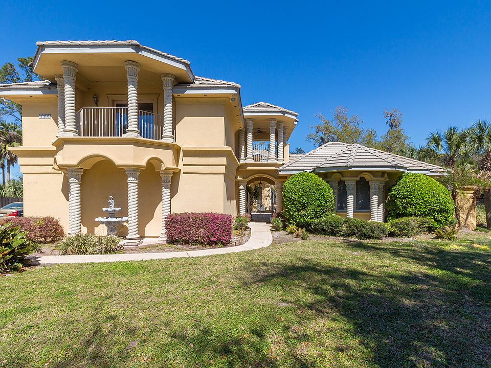 Custom, mediterranean style luxury home. Courtyard entrance with resort-style pool and separate guest cottage. Additional bonus/office/guest retreat above three car garage. Currently used as a home office with conference space, wet bar, and bathroom. Home features all the finest finishes and upgrades.Soaring Ceilings and surround sound, crown mounding, detailed trim around all of the windows and multiple balconies to maximize indoor/outdoor living. Great for entertaining, large gourmet kitchen opens to the family room. Oversized island with bar top seating, Granite counters, custom 42'' wood cabinets, butlers pantry and adjacent breakfast nook. Formal dining room punctuated by decorative columns. Grand formal living room with two story ceiling, gas fireplace, and sweeping staircase with flooring, oversized shower, jetted tub, morning bar and his and her vanities.4 Bedrooms, plus office, in main home. Guest cottage with 1BR. Additional bonus/office/guest retreat above three car garage. Currently used as a home office with conference space, wet bar, and bathroom.