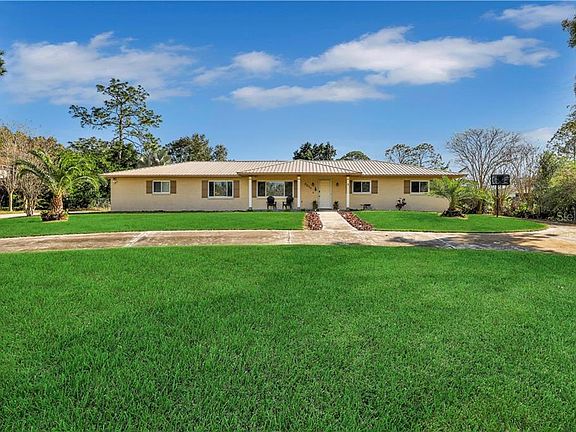 Don't miss this gem of a home! Located on one acre of land with no HOA, this gorgeous pool home has so much to offer. Completely fenced with 2 gated entrances and side entry garage. Circular driveway. Walk into this bright and open floor plan. Here you have the family room and dining room open concept. Kitchen is clad with gorgeous hickory wood cabinets, center island , built in microwave ,tile counters, huge copper sink and stainless steel appliances which all stay. 0ff the kitchen is the massive laundry room with lots of shelving for all your canned goods. Guest bathroom has double vanities with granite counters and a soaking tub to relax in along with a massive shower. Master en-suite has great closet space ,soaking tub with pedestal sink. Guest bedrooms are a great size and have plenty of closet space. Walk out through the French doors onto the screened lanai. Take a dip in the salt water pool with pebble tech finish, surrounded by a tropical oasis. Pavered patio. Sit back and relax and listen to the beautiful waterfall. Sit around the firepit on these cool nights and enjoy the peace and quiet. Very private back yard with lush landscaping and lots of fruit trees. Bring all your toys, or boats or RV, Plenty of room for everything. Double paned windows and extra insulation blown in for lower utility bills. Metal roof in 2015. Make your appointment to see this today!