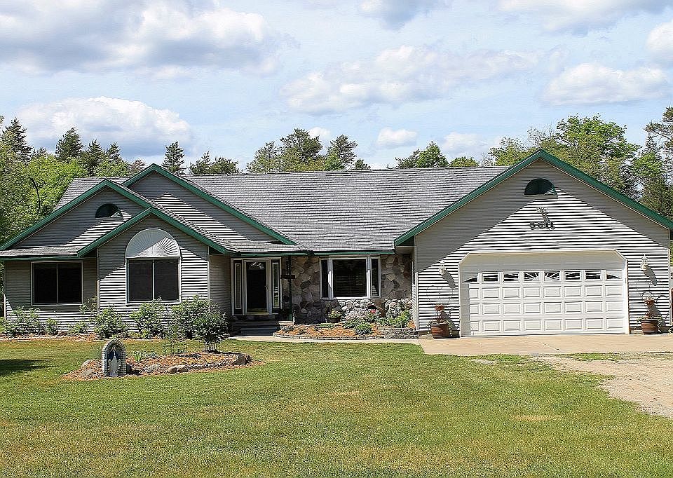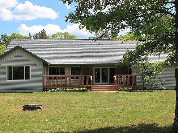Beautiful Open Floor Plan. You will love this gorgeous custom built 4 BD, 3 Bath, 2604 Sq. Ft. home on 10 acres between Roscommon and Kirtland Community College. Panoramic windows and vaulted ceilings allow you to relax and enjoy 4 seasons of scenic views that nature offers within the Huron National Forest. Interact with the whole family while cooking for 2 or 20 in this large kitchen with all new black stainless steel appliances July 2017. Has plenty of counter space, oak cabinets, lots of storage with pull out shelves in the pantry and under the counter lighting. Enjoy meals in the breakfast nook, at the counter bar, formal dining room or under the partially covered back deck. Master Suite with walk in closet, marble double bowl vanity, privacy toilet room within master bathroom. New carpet installed May 2017 though the entire home. Family room Impressive metal shingle roof installed in 2011, looks great, durable and long lasting plus benefit from lower central AC bills and discounted homeowners insurance. Harmen pellet boiler with radiant heated ceramic tile floors in kitchen, breakfast nook, all bathrooms and slate foyer. Also heats continuous flow domestic HW, garage and heat coil in the forced air furnace keeps this home toasty warm at half the costs. When away the forced air furnace converts to LP gas with homeowner owned LP tank. Water softener, Custom blinds, Low E energy windows, Bay window, Hallway linen closet, foyer closet and mud room closet, Garage has built in hanging storage shelving. Interior of home painted spring 2016. Detached 30 x 40 Pole Barn can park up to 6 vehicles and storage, approximately 1 acre area of underground electric dog fence. Heated hunting blind on property. Your own nature trail out the back door. Road repaved Fall 2016