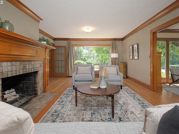 Grand Praire in heart of Mt. Tabor. Welcoming Front porch opens to formal Entry. Glass French drs leads to spacious Living rm w/ giant Firpl, lovely woodwrk & light-filled Library/Music rm. More french drs open to Dinig rm & Kitch. Kitch has an eating nook, powder rm & dr to lovely patio & landscaped bkyrd - bird heaven. Upstairs features 3 bedrms, hall bath & a PrimarySuite. Primary has full bath & West view deck. Basemnt has HI-Ceilings w/bckyrd access. Rare 2-Car Grg. 3 blks to Mt Tabor Park! [Home Energy Score = 2. HES Report at https://rpt.greenbuildingregistry.com/hes/OR10202976]