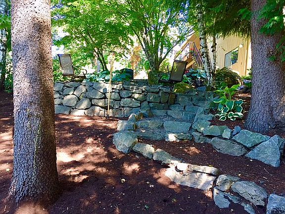 Daylight basement with 3.5 car garage and westward view. Exposed aggregate concrete deck and porch. Gas heating with central air-conditioning.
