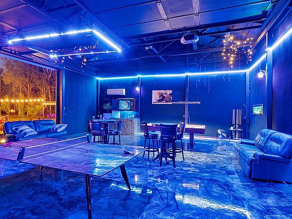 Newly finished 900 sqft detached flex room. Includes new HVAC unit, epoxy floor, smart lighting, Pool Table, Sofas, tables and chairs, ping pong, mini fridge all stays.