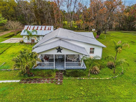 Enjoy the peacefulness of Nassau County from a cozy swing on an oversized, covered front porch. Walk inside to a quaint dining and kitchen area looking through to a large living room. Its one of a kind charm features 2 bedrooms PLUS a bonus room/den/3rd bedroom or your home office. The master bedroom has an en-suite along with 2 walk-in closets. Enjoy the outdoors from a large rear screened porch along with an extended patio. This home was built in 1940, has a beautiful metal roof and is an off-grade foundation with a gravity fed septic system. Oversized attached workshop, RV parking in rear with septic hookup and 2 wells. Fresh paint and brand new carpet just installed. Convenient location - 8 miles from center of Callahan, 9 miles to I95, 15 miles to Yulee shopping, and 24 miles to the beach. Sold As-Is.