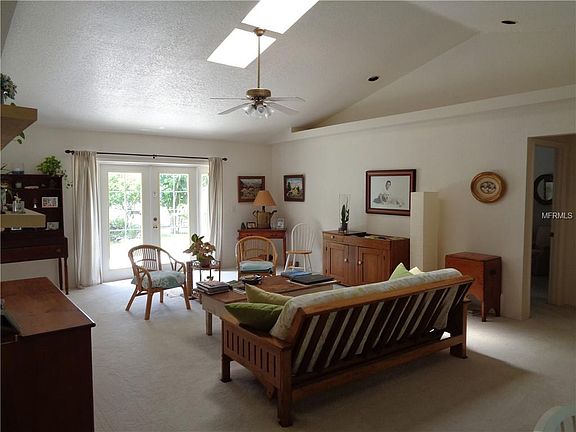 Delightful 3 bedroom, 2 bath home situated on a large lot. Open and bright floor plan is inviting. Skylights add tons of natural light. Fenced backyard is very private with a small pond. Lush landscaping surrounds the home. Spacious family room with French doors to your backyard. Large master bedroom, walk in closets, and master bathroom has a walk in shower. Plenty of room for a pool in the future if desired. No HOA fees! No CDD fees!! Make this home your own! Conveniently located near I-75, A+ schools, shopping, and restaurants.