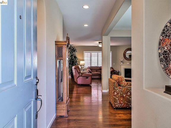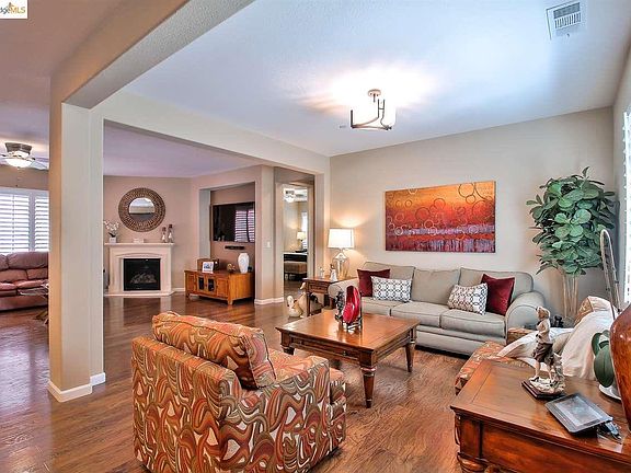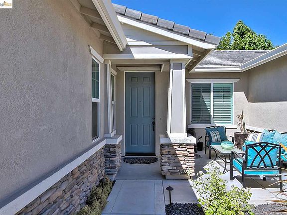 Open houses Sat. and Sun. 7/14 and 7/15, 1-4 pm. Beautiful, 3 years new single story with loads of upgrades. Open concept home with 3 bedrooms and 2 bathrooms, with laminate wood floors and plantation shutters throughout. The kitchen boasts stainless steel appliances, granite counter tops, pull out shelves and a lovely stone back splash. The home is located on a corner lot with a stamped concrete patio in the backyard, paved side yard access and a patio out front with a water feature. Custom closet in the master with extra shelving and drawers, overhead storage in the garage and a storage shed on the side yard. No Mello Roos or HOA, and located in the Brentwood school district. This one is not to miss!