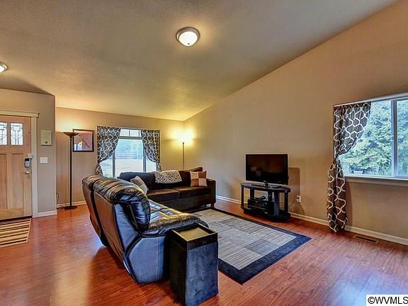 Newer 3 bed/2 bath home in SE Salem w Solar Power! Large living room w/ vaulted ceilings & arched entry. Modern kitchen includes SS appliances, granite counters, WI pantry, eating island. From the dining area, walk out onto the deck for mountain views. Master Suite provides space with vaulted ceiling in bedroom, WIC & bath w/ granite counters & dual sinks. 2 additional bedrooms, another full bath & utility rm complete the layout. Home features "smart" outlet/switches, distributed audio, solar lease.