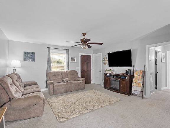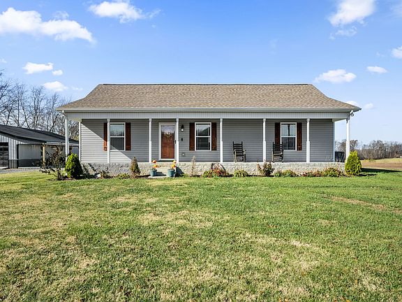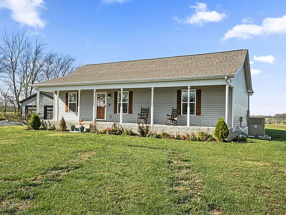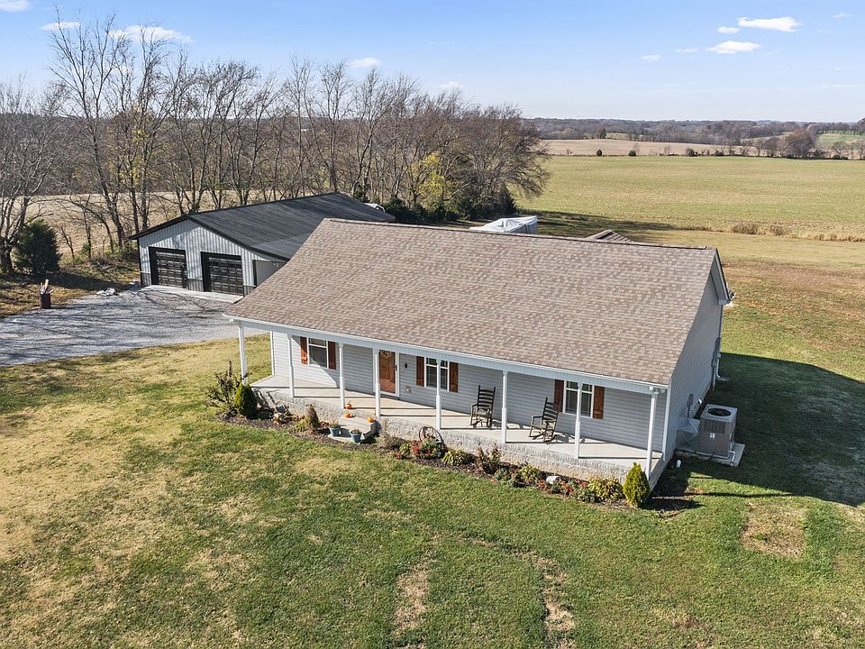 Want to be close to town and be in the country? Then check out this well maintained charming 3 bedroom, 2 bath farm style home nestled on 5 +/- acres with sunset views or you can watch the sunrise on the covered front porch. You'll love the 30x50 detached garage with 9x40 covered porch that has endless opportunities to fit your needs. One level home - ample storage in kitchen with new laminate flooring - oversized closets in bedrooms - tiled flooring in both bathrooms. Beautiful farmland views with wildlife. Home is 4 years old. Don't miss out.