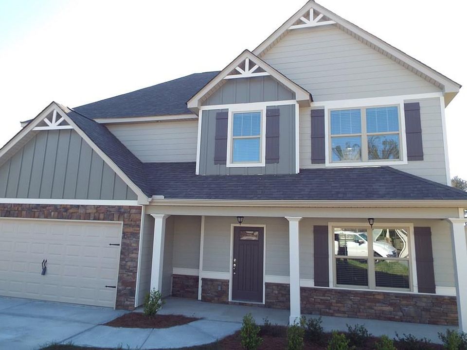 Main level features formal dining room, powder room, spacious kitchen w/ breakfast bar & family room w/ wood burning fireplace. Hardwood floors in all living areas on the main level. Upper level features a master suite w/ his & hers walk-in closets, master bath w/ double vanity and separate tub & tile shower with bench, laundry room, 3 additional bedrooms all w/ walk-in closets & 1 additional full bath. Exterior has 2 car garage, covered back patio ideal for game day.
