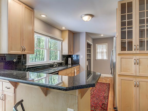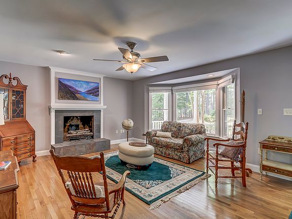 Wonderful traditional home nestled within 2 private & wooded acres. Hardwood floors throughout most of home. Spacious family room. Separate dining area w/ vaulted ceiling. Updated kitchen offers granite tops, s/s appliances & tile b-splash. 1st floor master suite features cathedral ceiling, dual vanities, whirlpool tub w/ separate tile shower & walk in closet. Built-in bookcase upstairs flanked by 2 spacious bedrooms & full bath. Oversized 2 tiered deck. Fantastic wooded views! Pond in back of property.