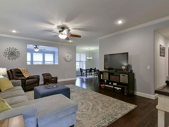 4bd/2ba custom built home has a unique floor plan with a second living area that can be used as a bonus room, office, or a sunroom. Some special amenities in this home include high ceilings, crown moulding, hardwood and tile floors throughout the home, no carpet. The kitchen includes granite countertops, custom knotty alder cabinets & walk-in pantry. New refrigerator in 2019, microwave in 2024, and dishwasher and garbage disposal in 2025. Spacious master suite features a walk in closet, walk in shower, jetted tub, dual vanities, granite counters & knotty alder cabinets. Plenty of storage with multiple closets, a mudroom, and oversized 3-car garage. Exterior is all brick for easy maintenance and a brand new roof and gutters in 2023. Beautiful corner lot with privacy fenced in backyard makes for your own oasis to enjoy the heated in ground pool that had a new liner installed in April 2024!