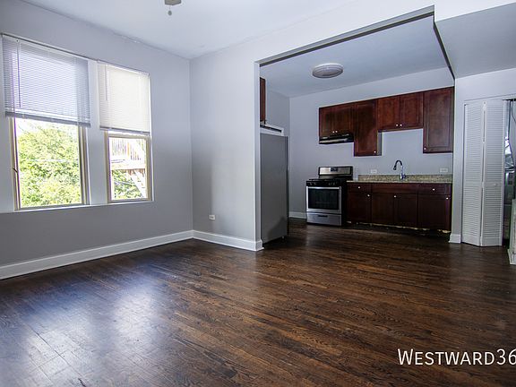 This freshly available 4-bedroom, 1-bath apartment blends vintage Chicago character with generous space and sunlight. The open-concept living room and kitchen feature hardwood floors, high ceilings, and plenty of windows that fill the space with natural light. The kitchen offers great flow for cooking and entertaining, while the extra-large main bedroom provides comfort and flexibility for a work-from-home setup or private retreat.