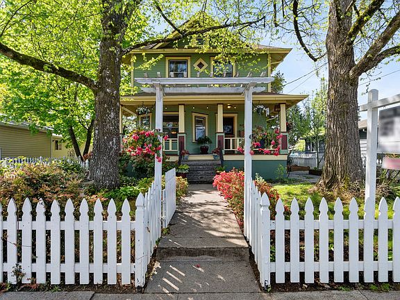 Spring has arrived, and it is time to enjoy it by moving into this Woodstock home. This Portland Four Square has a fantastic backyard and a lot size of 50ft by 194ft, making it a rare find. A 4-level home with 383 sq ft of unfinished attic space, the main level living offering formal living and dining, a spacious family room, and a bright kitchen. A 4-bedroom home with three full bathrooms, one on each floor except the attic. A gazebo in the backyard to enjoy these spring and summer months, raised garden boxes to plant a garden, and flower beds and boxes to enjoy the beauty and fragrance of the flowers. Take notice of the details of custom Pratt and Larson Tile on the gas fireplace and kitchen backsplash, with Rejuvenation lighting in the living room and kitchen. Hardwood floors are featured in the foyer, living room, dining room, primary bedroom, and hallway. An oversized detached 2-car garage with room for a wood shop or craft area that alone is hard to find in the Woodstock neighborhood. The question is, would you enjoy your time more in the backyard or on the front porch? Water line from house to the city was replaced in 2019 and sewer line replaced in 2008.