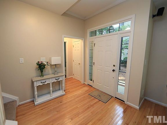 End unit townhome w/2 car garage in fantastic N. Raleigh location. New counter tops in kitchen (granite) & bathrms (quartz). New sinks & faucets installed in kitchen/bathrooms. New glass shower door in master. New stainless-steel appliances installed in kitchen. New outlet switches/wall plates throughout home. Added 2 outlets n garage. Installed new lighting & fixtures throughout home & garage. Installed recessed TV box w/outlet & HDMI cables above FP. Installed Ecobee smart thermostat.