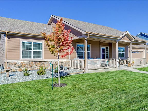 Beautiful ranch-style home on a large corner lot in Blackstone Ranch! Newly completed in October 2021 with multiple upgrades, your new home features a spacious floorplan with 9 ft ceilings, stylish neutral décor, and a roomy kitchen complete with soft-close maple cabinets, 42” upper cabinets, stainless-steel appliances with gas range, and granite countertops. Upgraded luxury vinyl plank flooring extends seamlessly throughout the kitchen, dining room, living room, and foyer. Everything you need is on the main-level including a large laundry / mud room and a primary suite complete with 5-piece bath, upgraded tile shower and soaking tub surround, and walk-in closet. Largest floorplan in the neighborhood with generous living space, a full basement, and 3,950 total sq. ft. Abundant storage and parking with an oversized three-car garage (complete with insulation and drywall) and an expansive driveway. Enjoy your morning coffee on the impressive covered front porch, and a relaxing evening in the spacious backyard. Convenient location near amenities, rec center, schools, and community park. Easy commute to Buckley AFB, Anschutz Medical Campus, Southlands Mall, Aurora, and Denver International Airport. Welcome home!