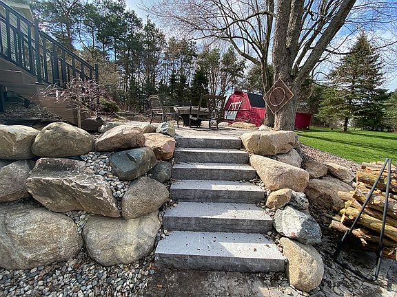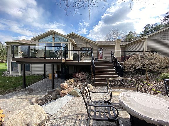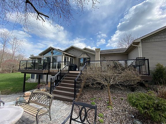 Open concept,COMPLETELY REMODELED Ranch with premium upgrades and extras on 4 rolling acres! Gourmet cherry wood kitchen with stainless steel high end appliances. Family Room and Dining area have rich oak flooring and an electric corner fireplace. 3-Season Sun Room overlooking brand new 2 tier composite deck leading to a brand new 2 tier stone patio area with large Firepit with outstanding view of 3/4 acre stocked pond. Cozy Den has double crown molding and turret daylight windows. Master Suite really "stands out" with gorgeous attached bath, including 2 person jetted tub, ceramic shower with multiple heads and a walk-in closet the size of a bedroom!! Second bedroom has its own ensuite full bath remodeled in 2018 and walk in closet. Main guest bathroom remodeled in 2014, Walkout basement with half bath remodeled in 2020, turret and daylight windows and an additional 1900 square feet of living space broken into 3 bonus rooms. Phenomenal stone/bolder landscaping with mature pines and an English garden. Pole Barn has office, heated & cooled, and space for 3 cars wide but is also deep Horse Barn with 2 stalls.