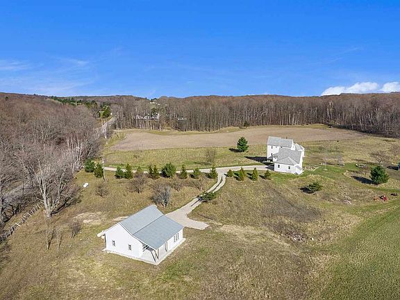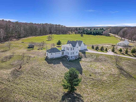 Wow Here is a truly quintessential Northern Michigan homestead Nearly 30 acres of meadows and hardwood forest make up this tremendous recreational paradise and it sits just across the street from miles of ATV and snowmobile trails Upon entering this gorgeous contemporary farm home, you get an immediate sense of quality craftsmanship. Spacious living areas are flooded with sunlight and feature tall windows that frame views of the outdoors from every room. The 9' ceilings and hardwood flooring throughout create an interior feel that is both warm and modern. The kitchen features Kraftmaid custom cabinetry with countertop lighting to provide a comfortable space to entertain. The spacious primary suite has additional windows above the bedframe and a walk-in closet with the hook-up option for a washer and dryer. The master bath provides a state-of-the-art penny-tile deluxe shower. The primary suite is on the main floor, separated from the living area by breezeway sitting room with a beautiful reclaimed barn-wood ceiling. Floor-to-ceiling Marvin sliders and large windows allow natural light to flood in to offer the feel of settling in the meadow. Just find a good book, kick back and enjoy The whitewashed horticulture cabin, porch seating, large fire pit and fenced-in garden only adds to the themes of the home. The new 1,000 sq. ft workshop is finished with hardwood paneling with with overhead doors. The in-floor heat, 2nd work room and covered porch area make it a wonderful year-round workspace/studio. A 20x40 maple Sugar Shack with a porch & deck is perfect for enjoying the delectable treat of pure northern Michigan maple syrup, complete with full equipment set-up for enthusiasts - a perfect hangout after outdoor fun Other features include low-maintenance vinyl cedar-shake style siding, all updated electrical, plumbing, newer installed forced air furnace, and farm and forest zoning for greater options. Schedule your appointment TODAY