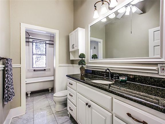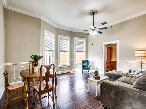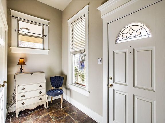 Historic Craftsman home on a quiet street in East Dallas, centrally located near Lakewood Shopping Center, Baylor Hospital, and only a block and a half to the Santa Fe Trail. The house has wonderful character: lovely front porch and back deck for grilling, 10.5' ceilings, moldings, a claw foot bathtub, 16 windows for abundant light, a spacious backyard with flagstone patio and solar-powered gate to the carport. The kitchen and baths have been nicely updated. The house has always been described as 3 bedrooms 1 and a half baths, but the third bedroom has no closet. You would need an armoire. It would make a great office, nursery or guest room. See the floorplan. Call for appointment.