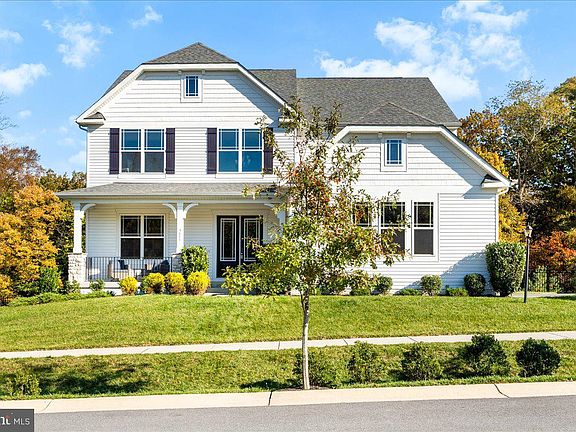 Rare opportunity in Tallyn Ridge to own a premium cul-de-sac lot offering unmatched privacy and wooded views from both the front porch and rear deck. Built by Drees Homes in 2022, this spacious 5BR/5BA , 5156 sq ft home blends luxury and functionality. The main level features a dramatic two-story foyer, a private office or library, and an open-concept kitchen with a massive island, gas cooktop, double ovens, sleek backsplash, and abundant cabinetry, making it a chef’s dream. Enjoy your morning coffee on the front porch or the bright sunroom or on the deck overlooking the serene backyard. The kitchen flows seamlessly into a light-filled family room with a gas fireplace. A main-level bedroom , full bath and receiving room from the garage adds versatility. Upstairs, the expansive owner’s suite offers a sitting area, dual walk-in closets, and a spa-inspired bath. A loft space outside the owners suite provides flexible living space for a craft area or another relaxation room. Bedrooms 3 and 4 each have private en-suite baths and walk-in closets. The walk-out lower level basement features a 5th bedroom, 5th bath, large recreation room, and storage. Located in the sought-after Oakdale School District, near parks, community pool, tennis courts, tot lots and short drive to downtown Frederick.