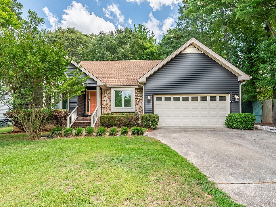 Stop looking right now. You have just found the most adorable single story ranch home in Raleigh for an amazing price! Big open living room with vaulted ceilings and gas fireplace, kitchen with stainless appliances and even the fridge stays. Separate dining room to entertain your guests this holiday season. Deck leading out to a patio surrounded by lush trees and gardens. Most importantly - this home has brand new vinyl siding for easy maintenance! Primary bedroom with double closets. 2 bedrooms and ample closet space. 2 car front load garage with storage. Laminate flooring throughout! Come see this home quick before it is gone!