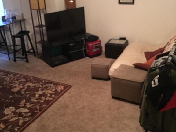 This space is in the basement of the house. There is a bedroom (12x14) with lots of closet room, a 3/4 bathroom and living room (16x20 feet). Living room is carpet, the painted concrete where you are welcome to put area carpets. Kitchen available during specific hours. Off street parking. All utilities are included - cable, internet, electric, trash, water and sewer. Lease is month to month.
