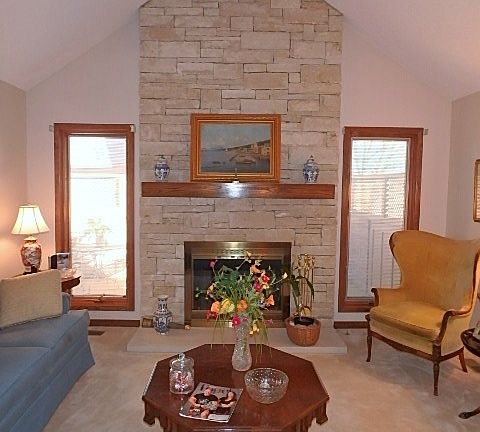 Spacious 3 Bedroom, 3 Bath Edinburgh Townhouse with vaulted ceilings and limestone fireplace. Main floor features kitchen w/ island, formal living room and dining area, den/office, cozy TV room and 2 bedrooms and 2 full baths. Master bedroom has attached bath and walk-in closet. Upstairs you have a balcony/loft plus a large bedroom with full bath and 2 large walk-in closets. Nice private deck for entertaining or relaxing. Main floor laundry. Large basement rec room. Amenities include pool and clubhouse