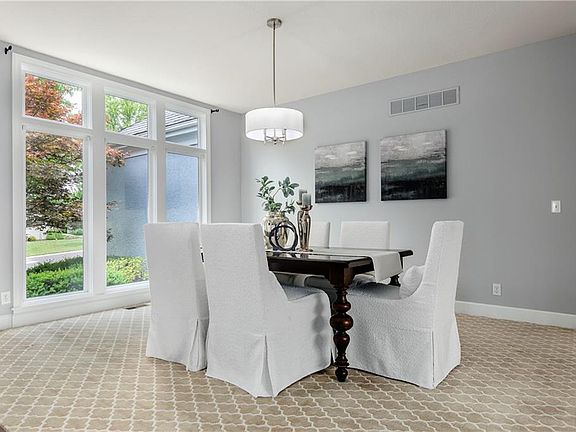Don’t miss this beautiful 1.2 story, 4 bedroom home situated on a large corner lot in the highly sought-after Turnberry neighborhood. The sun-drenched home features large windows throughout, with updated lighting and freshly painted rooms making the home ready to move in + enjoy! The charming home floor plan creates a seamless flow between the various living areas, allowing for effortless entertaining + comfortable everyday living. The spacious great room with a fireplace + 10ft ceilings has an abundance of natural light streaming through a wall of large windows. The kitchen with a center island boasts a walk-in pantry, ample cabinet space + a bright eat-in breakfast nook overlooking the backyard. The adjacent hearth room is considerable in size with lovely hardwood floors + a fireplace, creating an ideal gathering place. Retreat to the main level primary suite, with new carpet, paint + the en suite bathroom that includes double sinks, walk-in shower, jacuzzi tub + walk-in closet. The main level also includes a formal dining room, spacious must-have home office + laundry room off the kitchen, providing convenience plus functionality! Additionally, there are three generous-sized bedrooms on the 2nd level, each with walk-in closets! The fully finished walk-out lower level offers generous versatile living + entertaining space (35x35) with an exercise room, wet bar, full bathroom + substantial amount of storage. Conveniently located in Overland Park w/ easy access to shopping, dining, excellent schools, parks + so much more!
