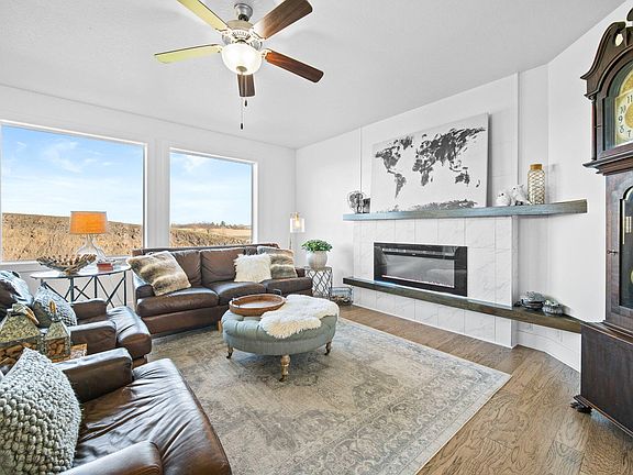 Discover this contemporary style home built with modern living in mind. Inside, you'll find a practical open floor plan that combines the living, dining, and kitchen areas. The kitchen is equipped with quartz countertops, stainless steel appliances and a handy pantry. Large windows fill the space with natural light, and the modern electric fireplace adds both warmth and style. On the main floor, you will find three comfortable bedrooms and two baths including the relaxing master suite with walk-in closet and easy access to the laundry next door. Step down to the finished lower level and find a spacious family room with convenient walk out access to the back yard. Two additional bedrooms and a full bath are perfect for overnight guests, home office, or craft room. Outside, you will enjoy taking walks on the neighborhood walking trails, while the fenced yard is great for gardening or pets. With fresh paint and new carpet throughout, this home is move-in ready and waiting for you to make it your own.