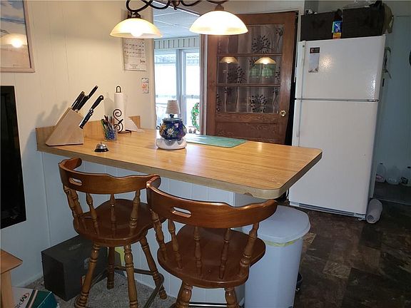 Channel front with gorgeous lake view! If looking for a view this is it a cute little bungalow, with carport. Inside features 2 bedrooms 1 bathroom large Livingroom, Kitchen, and closed in sun porch overlooking the lake beautiful sunset every night. Beautifully landscaped outside with several perennials a storage shed this property also has a large storage shed 21x30 that goes with the property the HOA is 420.00 a year that covers all snow removal and maintains the landing .