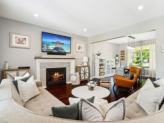 Step into this exquisite 5-bedroom, 5-bath home with a 3-car garage and be captivated by its beauty and updates. A welcoming front porch sets the stage for what awaits inside -a seamless blend of style and functionality. Hardwood floors grace the main floor, leading to a white cabinet kitchen with a chic subway tile backsplash, perfect for modern living. The living room features a cozy fireplace and floods of natural light, while a versatile flex space beckons as a bedroom, office, playroom, or den, accompanied by a full bath and a convenient half bath on the main level. Step outside to the deck overlooking the backyard firepit and Rush Creek Regional Trail for outdoor enjoyment. Upstairs, the primary suite awaits along with three generous bedrooms and another full bath. The lower level boasts a fully finished space with a rec room, wet bar, den, bath, and laundry for added convenience. With easy access to Hwy 610 and 169, this home is a true gem that you must see for yourself.