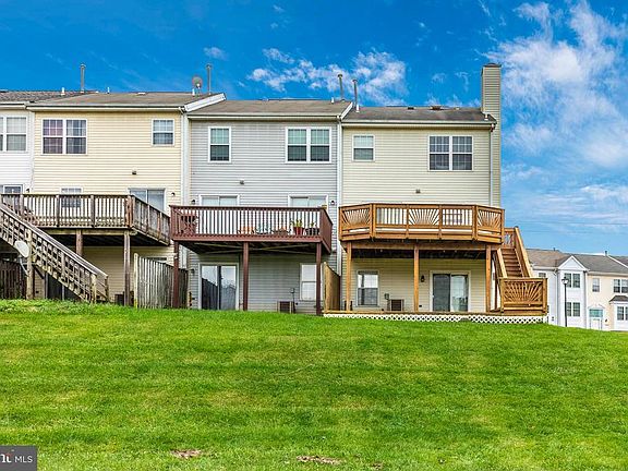Fabulous end unit backing to green space with green space between townhouse rows as well. Best lot in the development! Very nice 2 tier deck. Inside you'll find new carpet, new paint and new kitchen and bath flooring in an open floor plan with an abundance of windows for extra natural light. Walk out lower level is finished and has a rough-in for another bathroom. The roof is only about ten years old and the exterior is maintenance free. Convenient to commuter routes, restaurants, shopping and movie theaters. NO CITY TAXES!