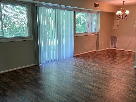- Description: LVP flooring, sliding patio door, blinds