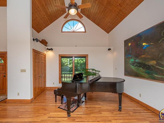 Here it is!! One of a kind!! Beautiful 1 1/2 story, with W/O Basement. Custom built in 1998. One owner, Dean Miller Builder. Impressive entry, wrap around covered porch, large foyer w/hardwood floors, High ceilings with wood accents, open plan - on 13.76 acres of Timber with walking trails and a very nice pond with dock. Note details on info sheet in added documents. Plus, a 30x24 fancy barn with cedar beams, wood interior, 2 garage doors, and antique chandelier, and solar panels that are integrated with house electricity for $38.10 monthly average. Very private acreage close to town; mostly hardwood floors on main level. Bay window area on all 3 levels; abundant natural light. Seller likes wood so many wood built-ins, hi-ceiling accents, and many wood features; storage everywhere. Large kitchen opens to 12x11 covered deck. Spacious Primary Bedroom Suite w/2 closets & 9x9 storage room. Formal Living Room and main floor Family room with fireplace, plus Walk out basement Fam/Rec room opens to large, shaded patio. Very private, must see to appreciate. Please see video available. 3,953 Sq Ft Living space. Truly one of kind property, Washburn Rural schools, hardtop road. Possession Nov. 7, 2025.